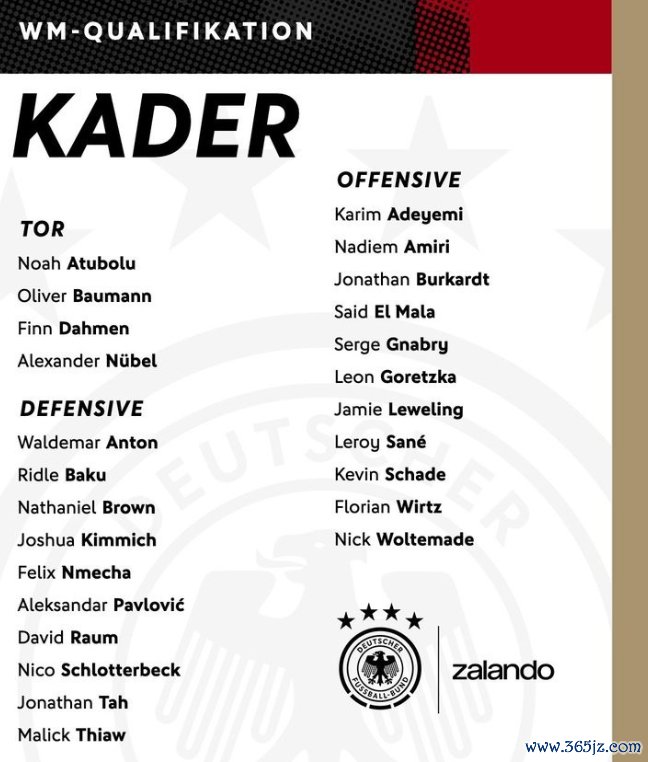 北京技巧11月6日,德国国度队公布了新一期的大名单,维尔茨、沃尔特马德、阿德耶米、基米希、亚历山大-帕夫洛维奇入选,萨内回首,科隆19岁边锋赛义德-马拉初度获得征召。